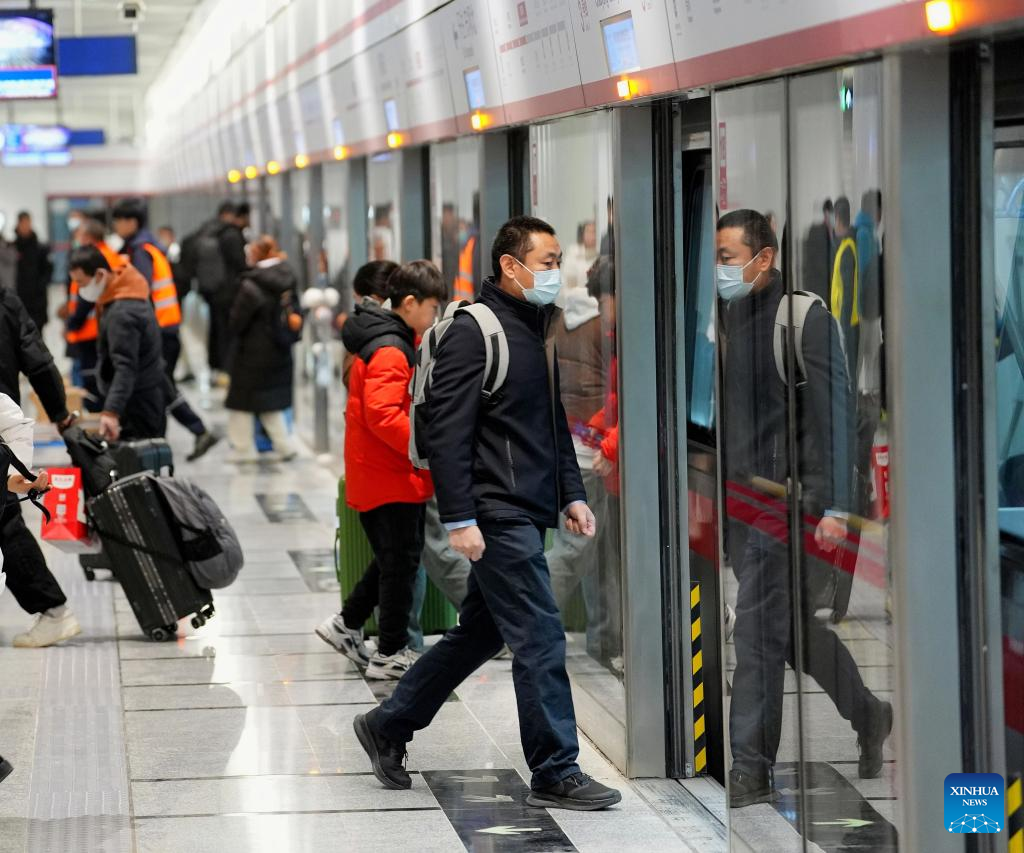 Passengers board a train of Subway Line 3 in Beijing, capital of China, Dec 15, 2024. (Photo/Xinhua)