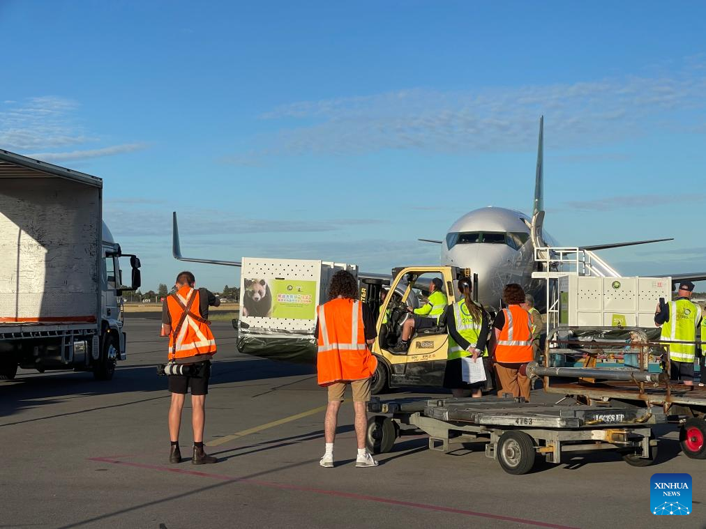 ADELAIDE, Australia, Dec. 15 (Xinhua) -- Giant pandas Xingqiu and Yilan have arrived in Adelaide, capital of South Australia, early Sunday morning, after flying for around 11 hours across approximately 8,800 km.