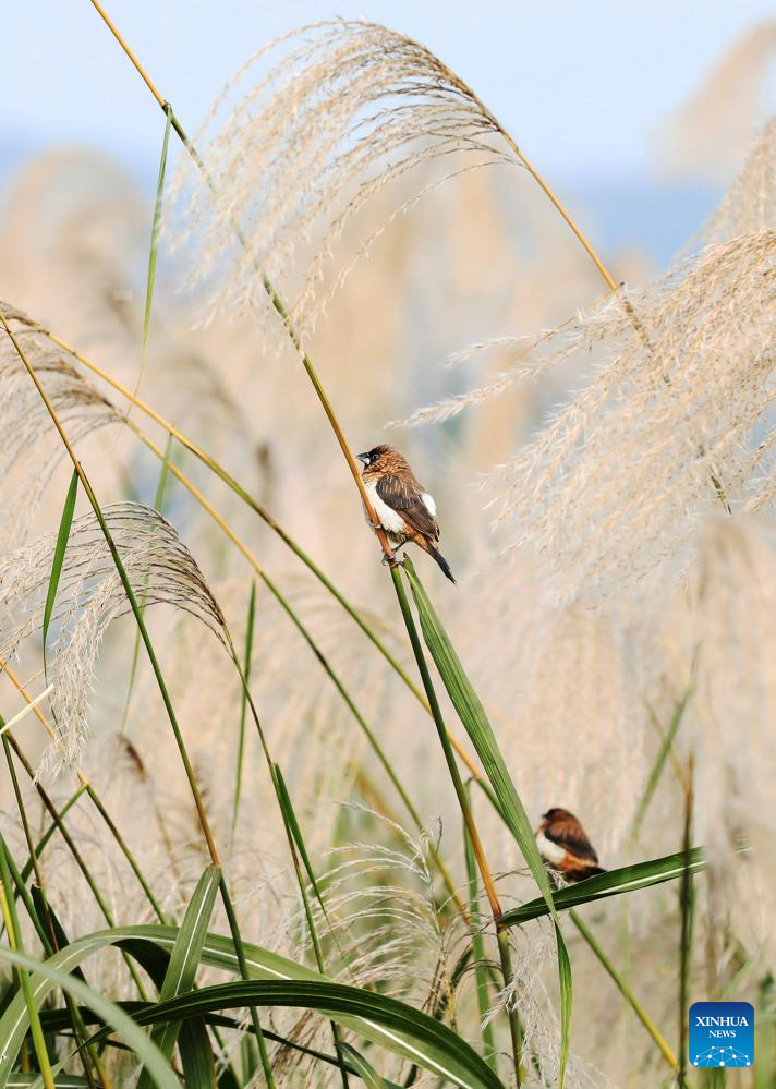 Birds are pictured at a wetland park in Tongchuan District of Dazhou City, southwest China's Sichuan Province, Dec. 15, 2024. (Photo by Zeng Meng/Xinhua)
