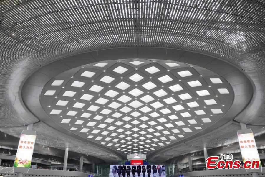 An interior view of Shanghai Songjiang Railway Station, Dec. 16, 2024. (China News Service/Yin Liqin)