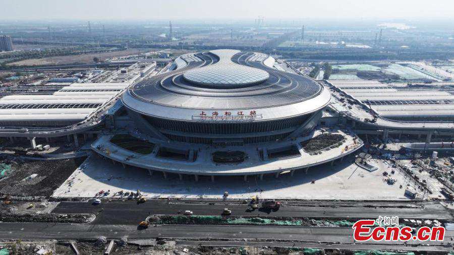 Aerial view of Shanghai Songjiang Railway Station, Dec. 16, 2024. (China News Service/Yin Liqin)