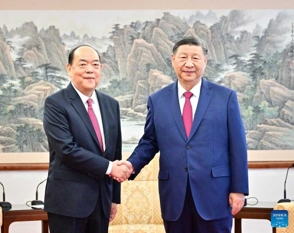 Chinese President Xi Jinping meets with Ho Iat Seng, the outgoing chief executive of the Macao Special Administrative Region (SAR), in Macao, south China, Dec. 18, 2024. (Xinhua/Zhai Jianlan)