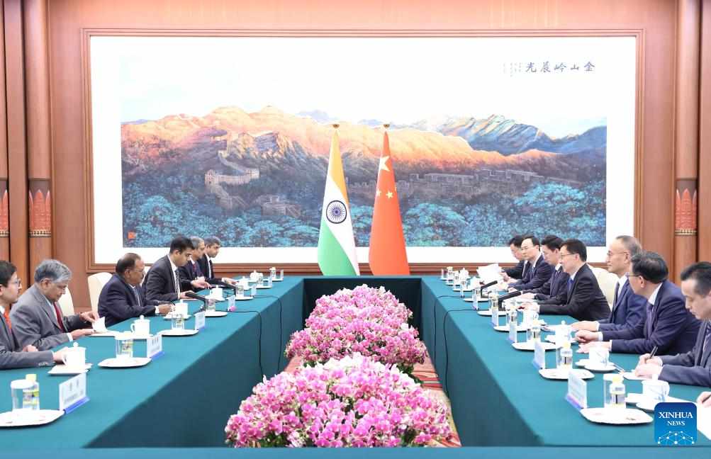 Chinese Vice President Han Zheng meets with Shri Ajit Doval, India's national security adviser and special representative for the India-China boundary question, in Beijing, capital of China, Dec. 18, 2024. (Xinhua/Yao Dawei)