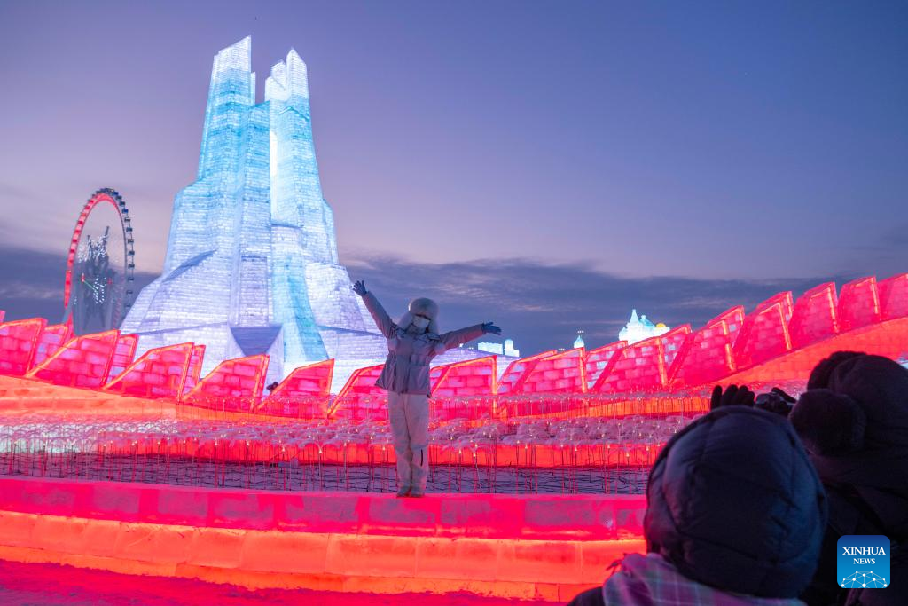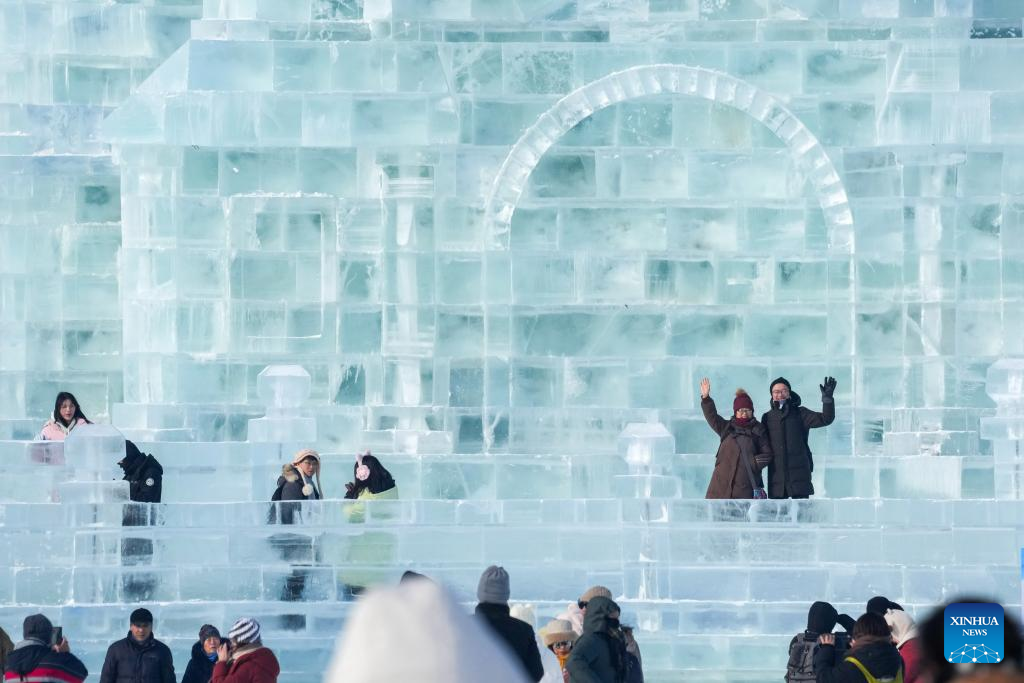 Tourists visit the Harbin Ice-Snow World, the world's largest ice-and-snow theme park, in Harbin, the capital city of northeast China's Heilongjiang Province, Dec. 21, 2024. (Xinhua/Yang Xuan)
