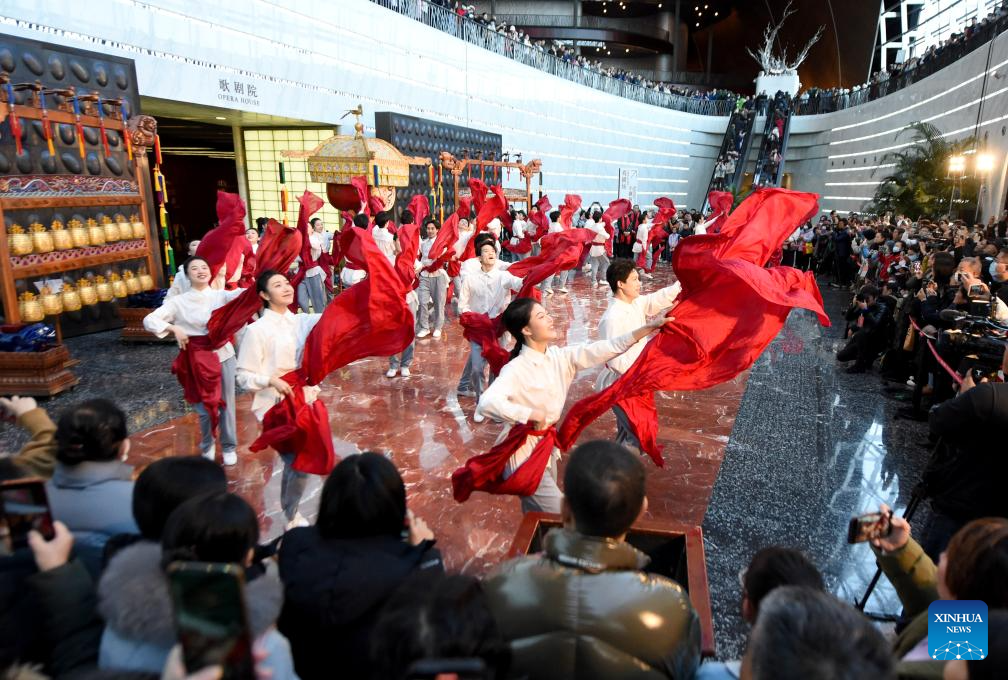 Artists perform at a public space of the National Centre for the Performing Arts (NCPA) in Beijing, capital of China, Dec. 22, 2024. NCPA staged 15 performances and more than 50 activities on its open day to celebrate its 17th anniversary. (Xinhua/Luo Xiaoguang)