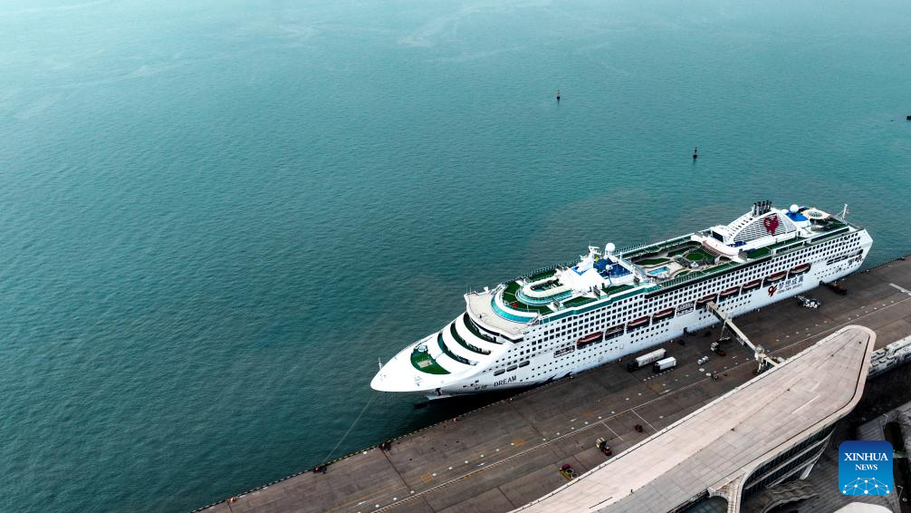 An aerial drone photo taken on Dec. 19, 2024 shows an international passenger liner berthing at a port in Tianjin, north China. Dec. 23 this year marks the 620th anniversary of establishment of the Tianjin City, which now stands as a tremendous attraction for tourists from home and abroad. (Xinhua/Sun Fanyue)
