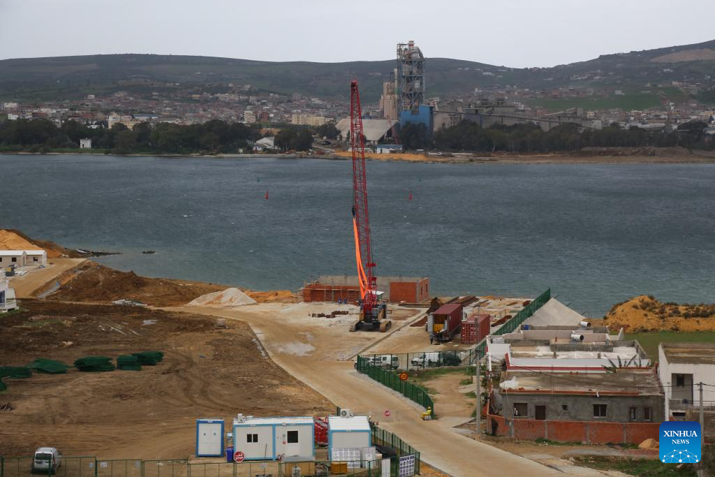 TUNIS, Dec. 23 (Xinhua) -- Along the southern bank of Bizerte Canal, which divides the Tunisian city of Bizerte into two parts, a towering crane was busy unloading containers. Nearby, site cabins have been installed in preparation for the construction of a new bridge across the canal.