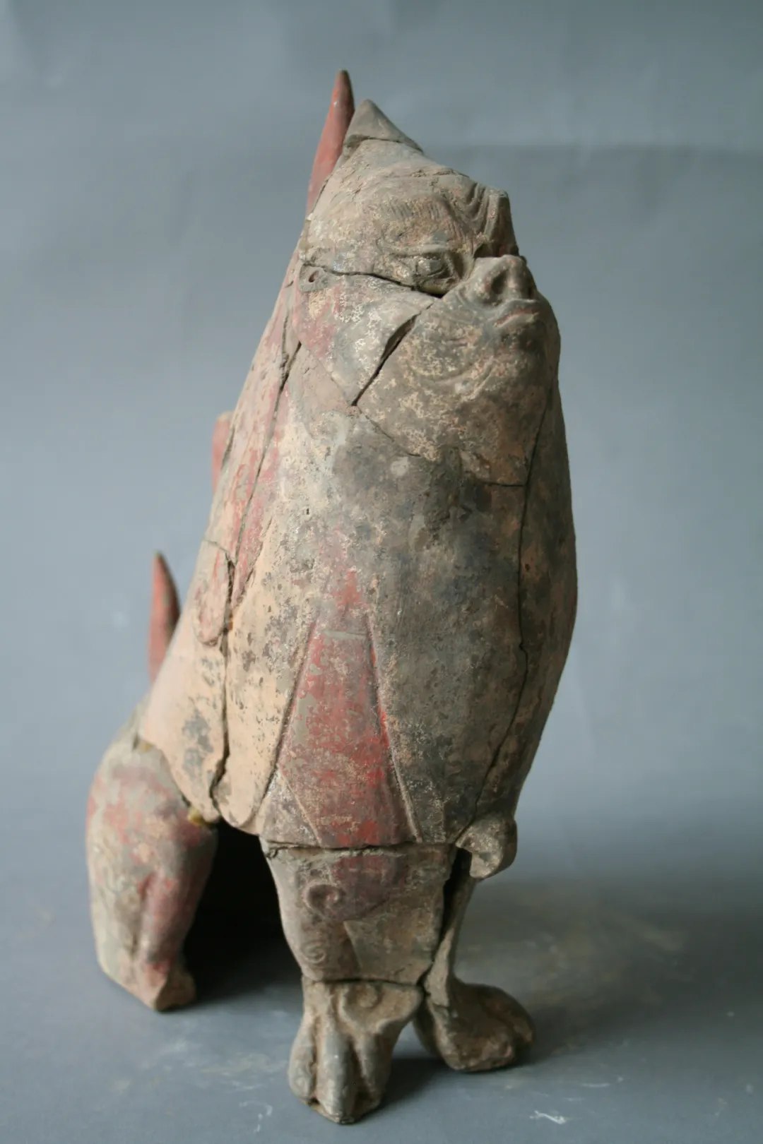 A painted tomb guardian from the Northern Wei Dynasty (386-534), with its sharp pointed head and pouted mouth, looks so adorkable as if it is asking, "Really?"