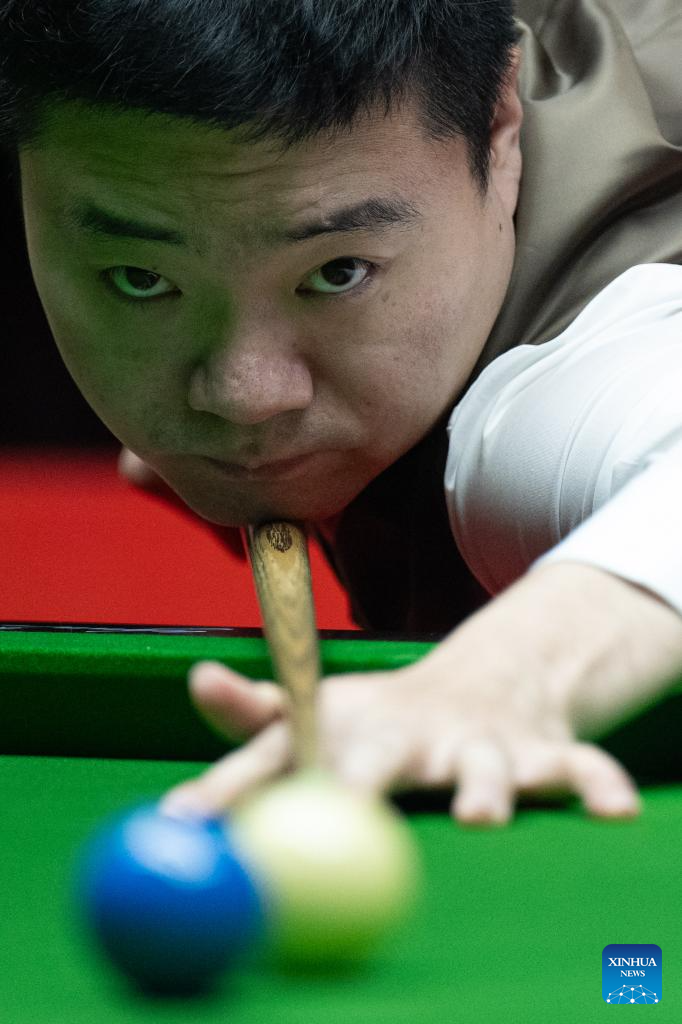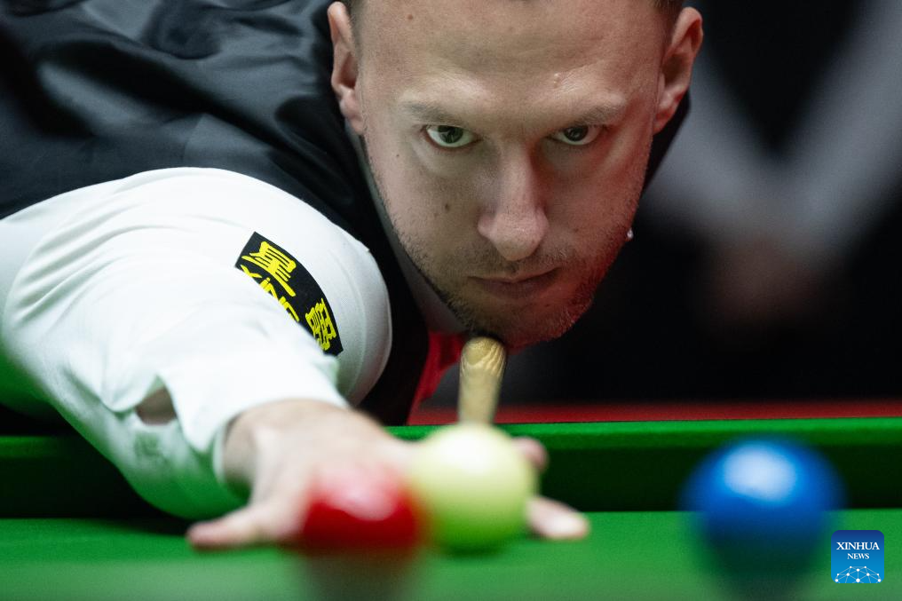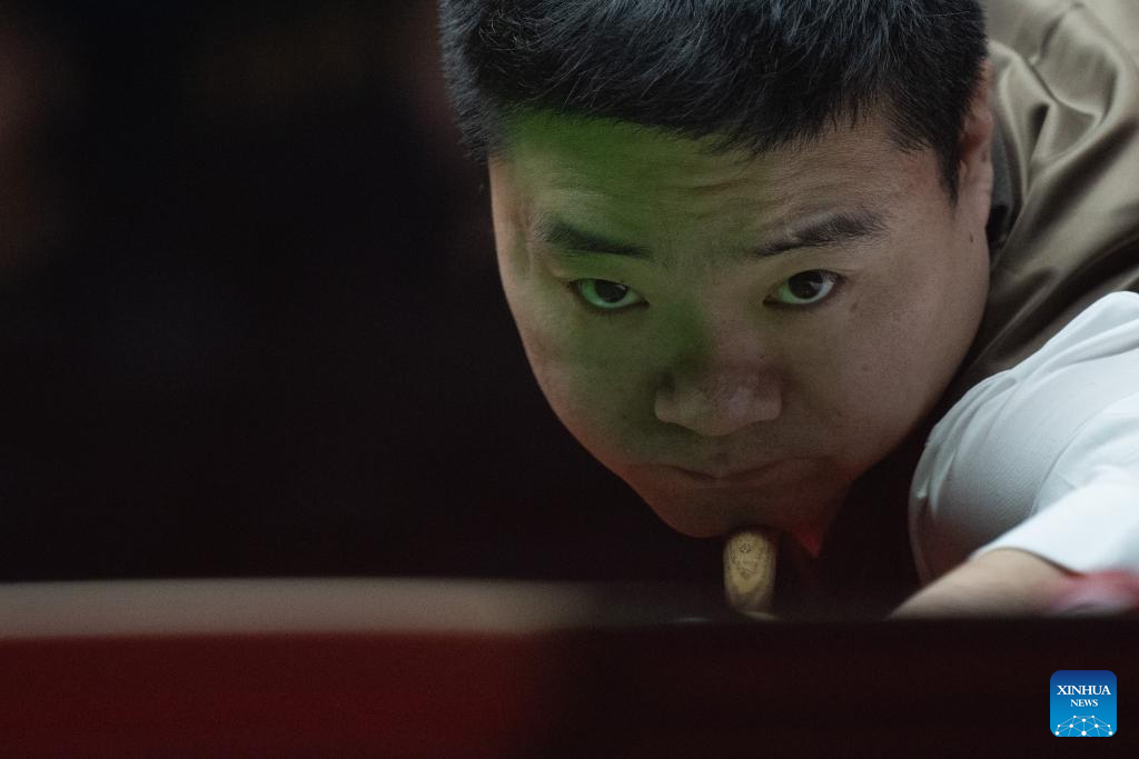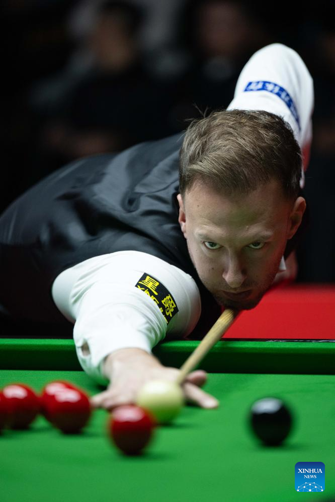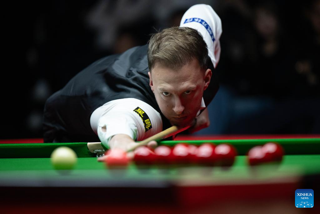 Judd Trump of England competes during the match against Ding Junhui of China at 2024 Macao Snooker Masters in south China's Macao, Dec. 25, 2024. (Xinhua/Cheong Kam Ka)