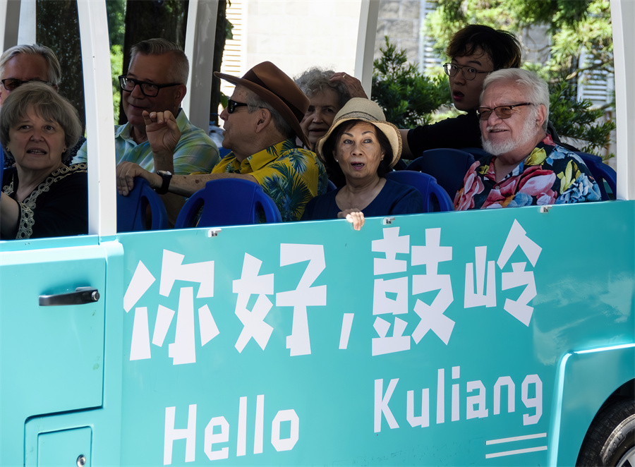 Foreign guests take a sightseeing tour in Kuliang, Fuzhou, Fujian province, in June. Since 1886, people from countries including the US, the United Kingdom and France, have built summer villas in Kuliang, fostering harmony with locals. (Photo/Xinhua)