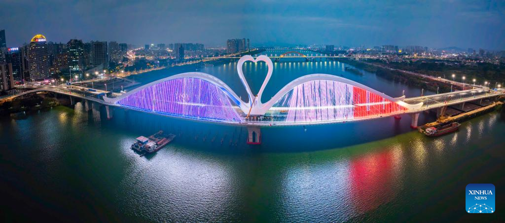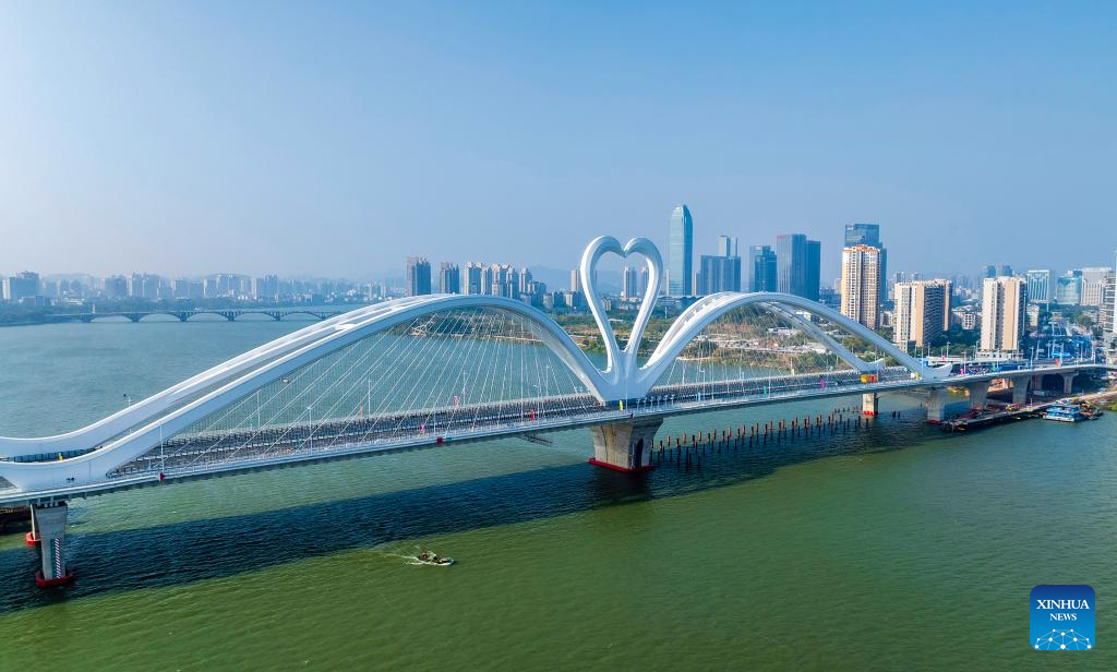 This photo taken on Dec. 27, 2024 shows Echeng (nickname of Huizhou, meaning "the city of goose") Bridge in Huizhou, south China's Guangdong Province. The 1,119.5-meter-long Echeng Bridge was put into operation on Saturday. (Xinhua/Tian Jianchuan)