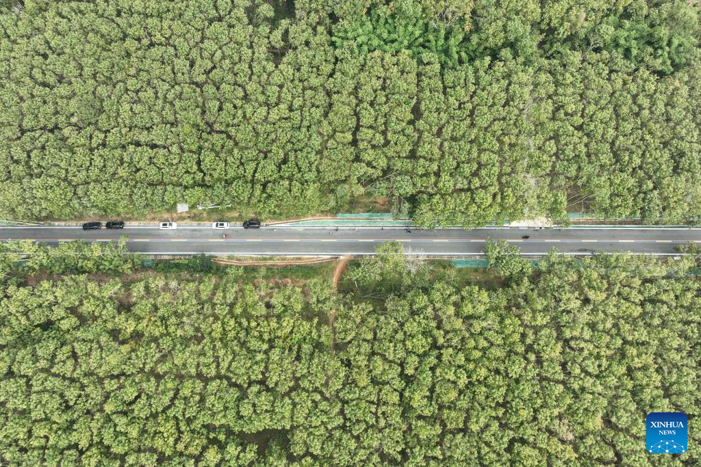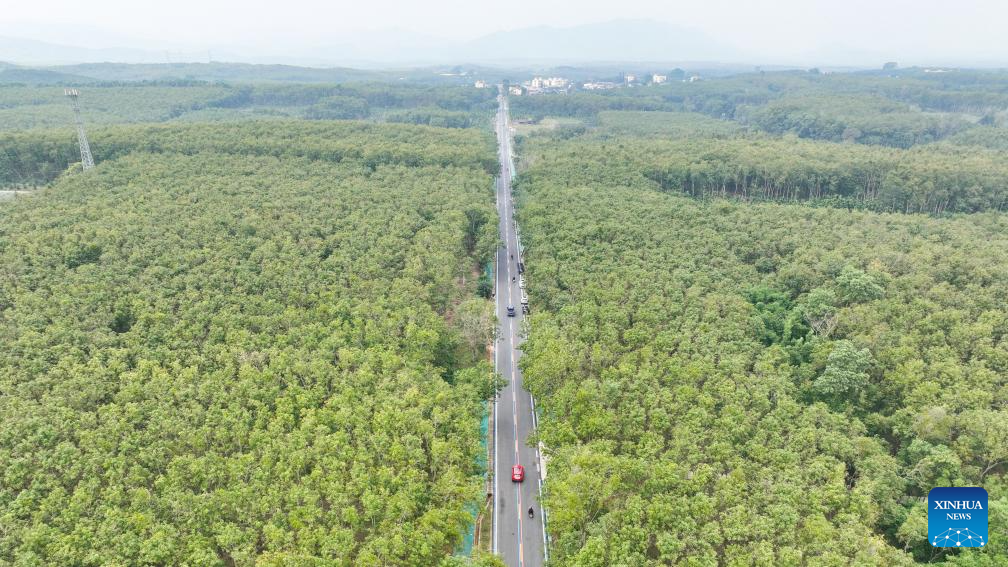 The 446-kilometer ring road opened to public traffic here on Sunday. Winding through nine cities and counties on this island province, the ring road plays a critical role in the transportation system at the rain forest park. (Xinhua/Zhang Liyun)
