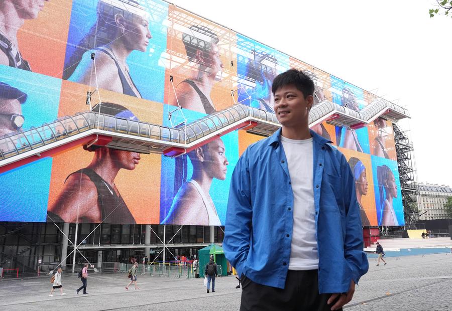 Chinese sprinter Su Bingtian poses for a photo outside the Centre Pompidou in Paris, France, July 27, 2024. (Xinhua/Meng Yongmin)