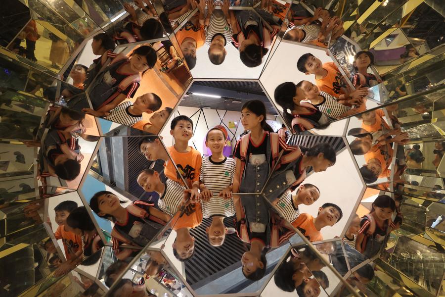 Children have fun at Xiamen Science and Technology Museum in Xiamen, east China's Fujian Province, Oct. 2, 2024. (Photo by Zeng Demeng/Xinhua)