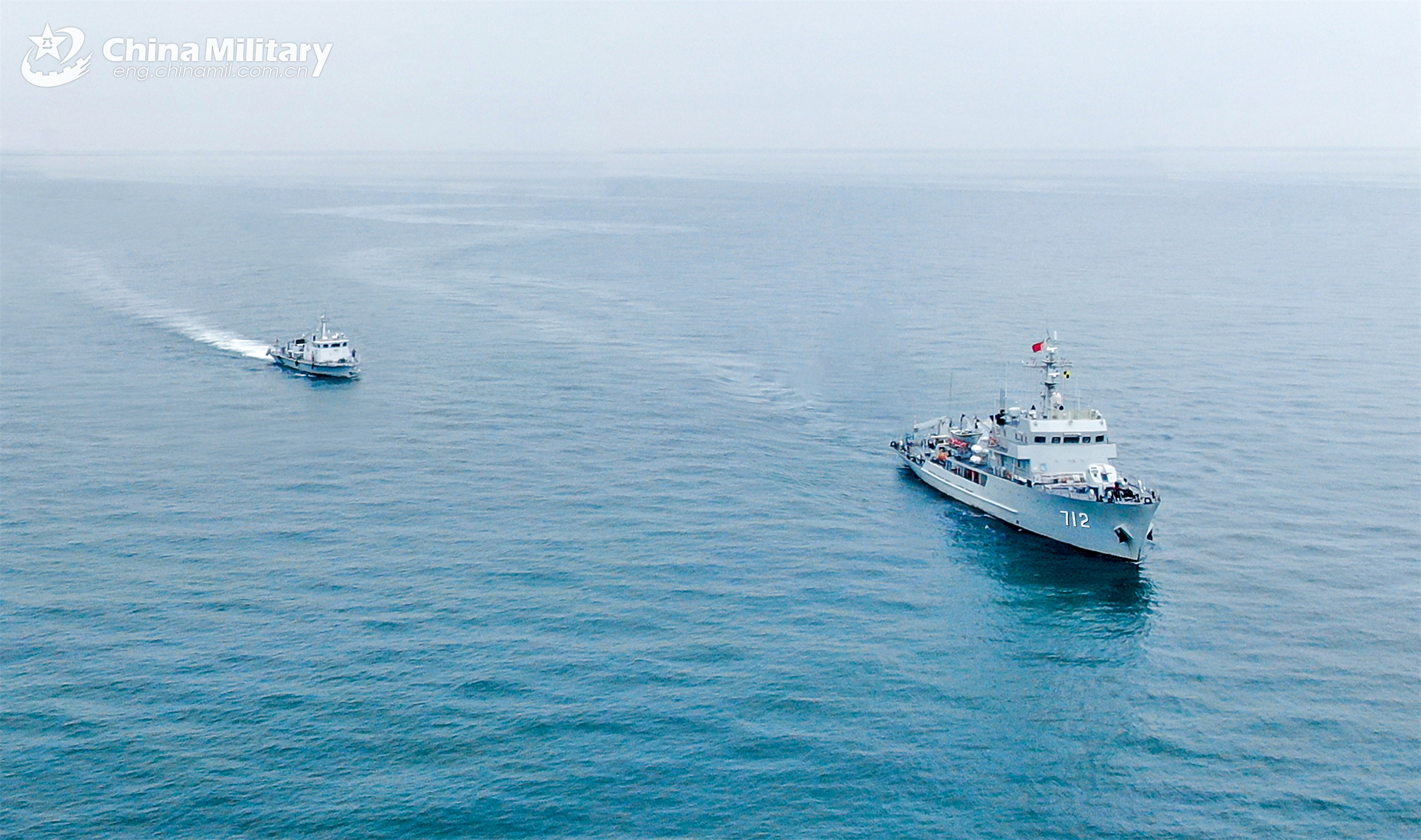 Minesweeper Rudong (Hull 712) attached to a naval group under the Chinese PLA Navy sails in tandem with a minehunter during a maritime training exercise in late November 2024. (eng.chinamil.com.cn/Photo by Zhang Yi)