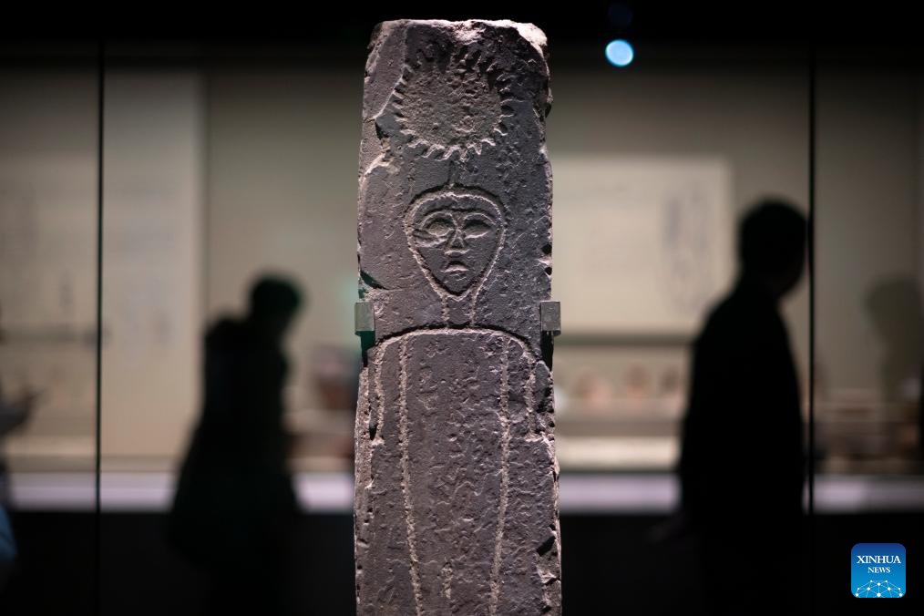 This photo taken on Dec. 31, 2024 shows a stone sculpture on display at the exhibition "A Panorama of Hubei" in Wuhan, central China's Hubei Province. The exhibition opened here on Tuesday, showcasing the history and culture of Hubei in both ancient and modern times. (Xinhua/Wu Zhizun)