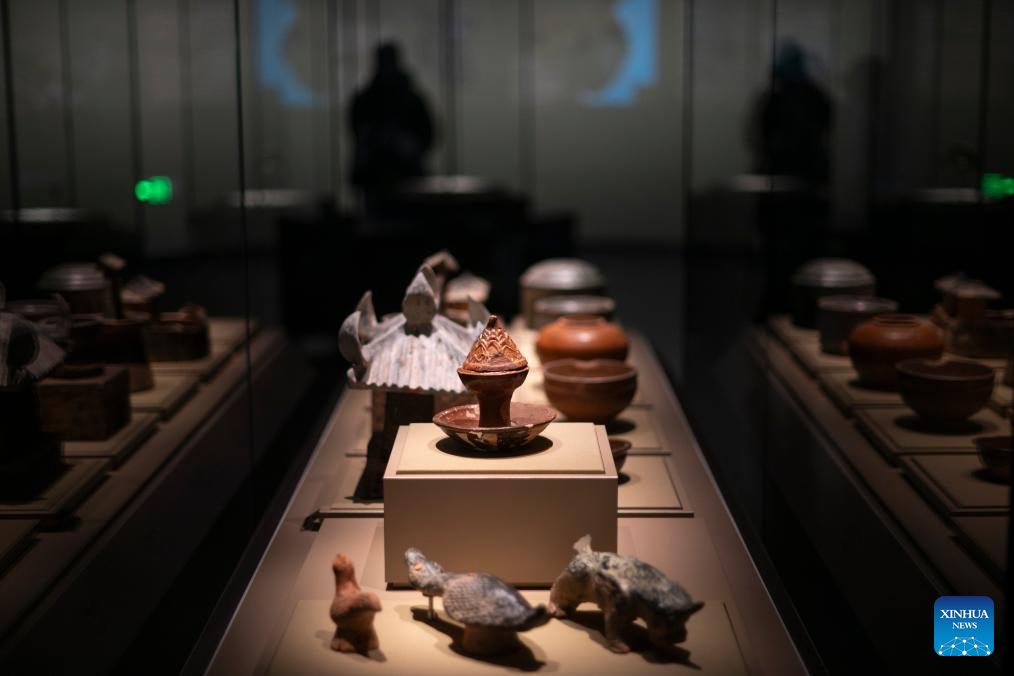 This photo taken on Dec. 31, 2024 shows pottery items on display at the exhibition "A Panorama of Hubei" in Wuhan, central China's Hubei Province. The exhibition opened here on Tuesday, showcasing the history and culture of Hubei in both ancient and modern times. (Xinhua/Wu Zhizun)