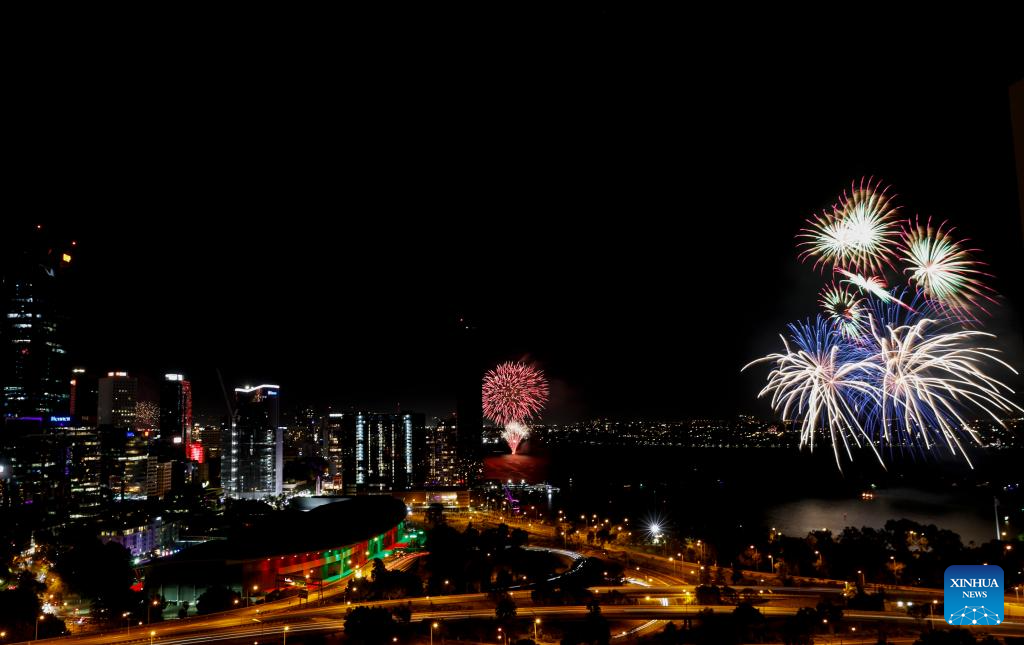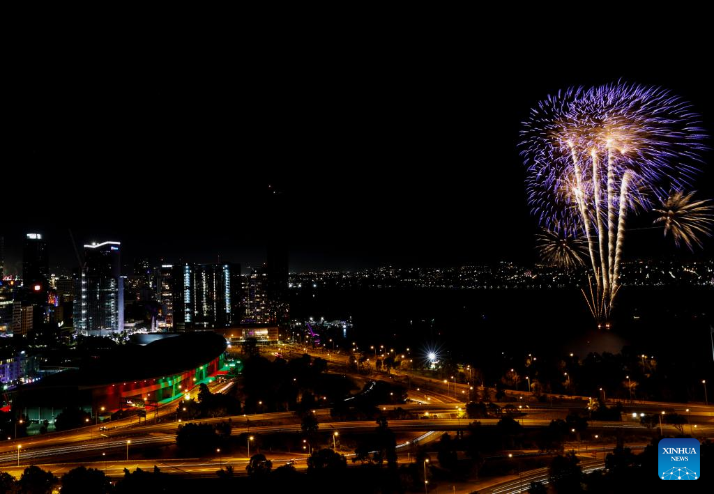Fireworks explode to celebrate the New Year in Perth, Australia, on Jan. 1, 2025. (Xinhua/Ma Ping)