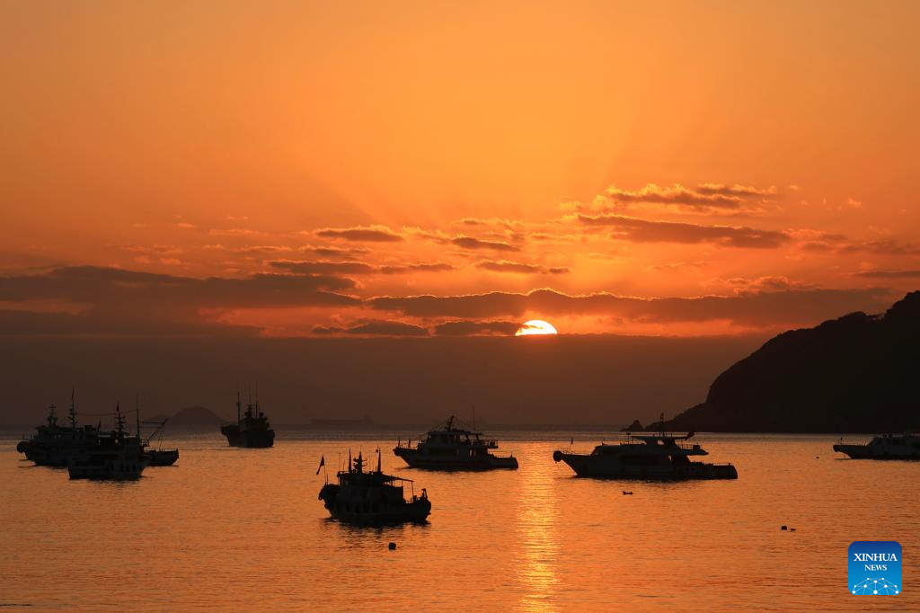 This photo shows the sunrise scenery at Wushitang scenic spot in Zhoushan, east China's Zhejiang Province, Jan. 1, 2025. (Photo by Xing Shoumiao/Xinhua)