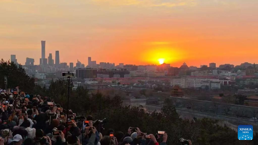 People watch sunrise at Jingshan Park in Beijing, capital of China, Jan. 1, 2025. (Xinhua/Xing Guangli)
