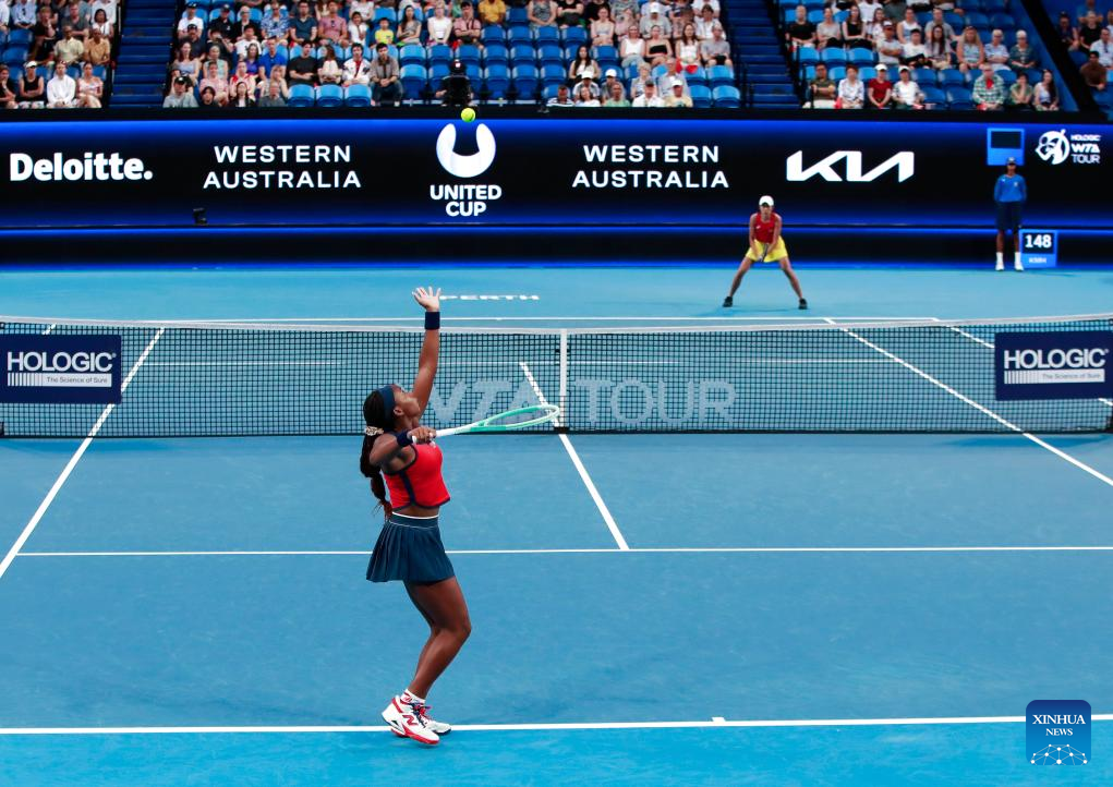 SYDNEY, Jan. 1 (Xinhua) -- Stars Coco Gauff and Taylor Fritz put a halt to China's stirring United Cup campaign with victories in their singles matches on Wednesday as top seeds United States powered through to the semifinals.