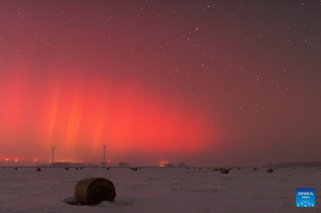 This photo taken on Jan. 2, 2025 shows the aurora seen in Qiqihar City, northeast China's Heilongjiang Province. (Photo by Wang Yonggang/Xinhua)