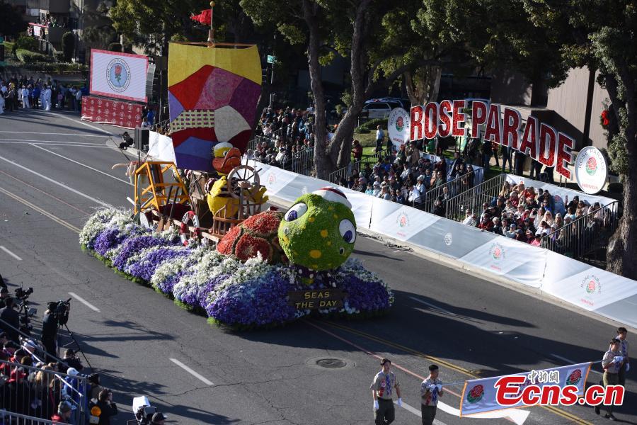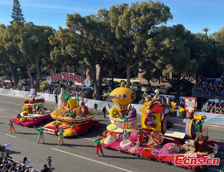 A float moves along Colorado Boulevard during the 136th Rose Parade in Pasadena, California, the United States, Jan 1, 2025. (China News Service/Zhang Shuo)
