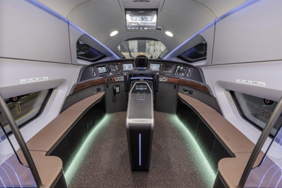 The height of the CR450 has been trimmed from 4.05 meters to 3.85 meters to make the train more slender. Even with the reduction in the overall height, the height of the interior cabin remains unchanged. Thanks to this compact design, the CR450 offers 4 percent more room for passengers and has expanded the storage capacity for large luggage by 100 percent.