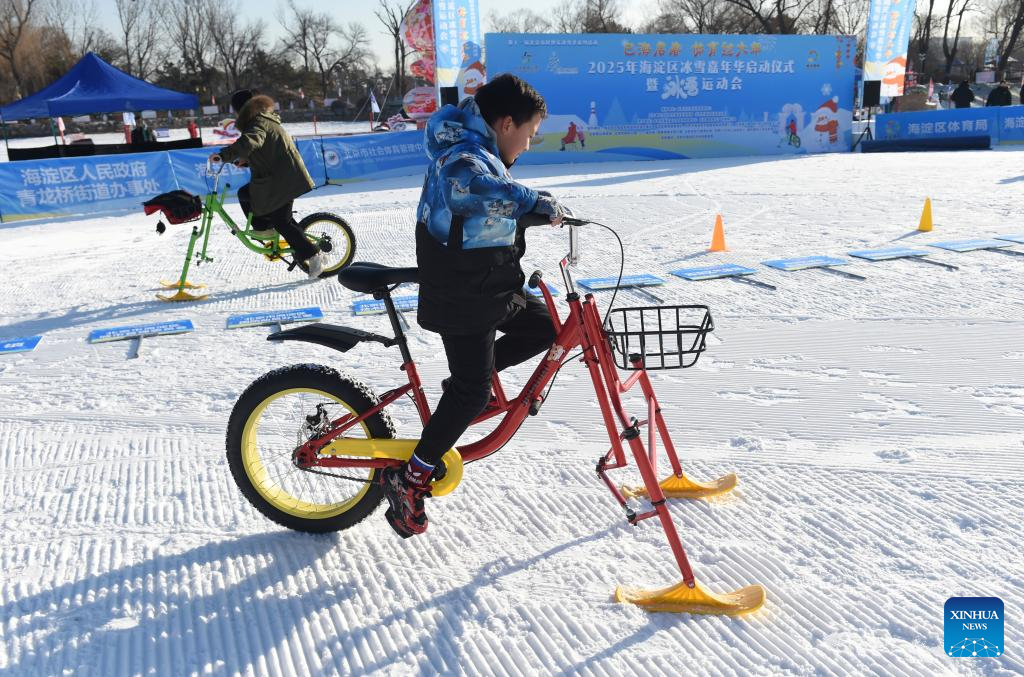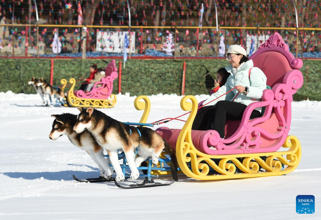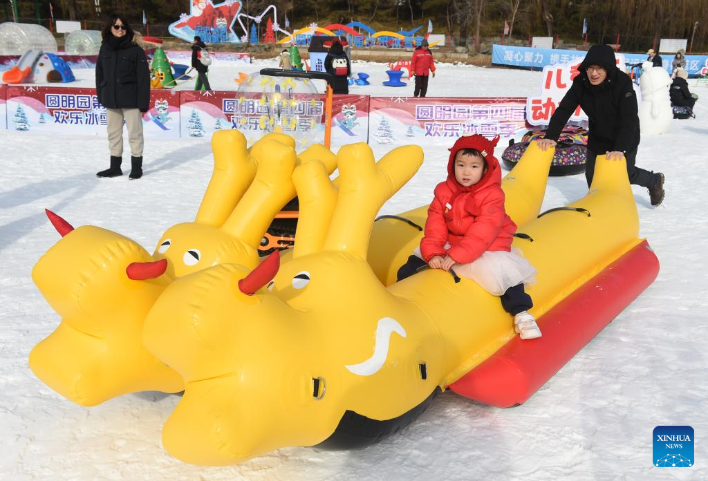 Visitors have fun at Yuanmingyuan Park in Beijing, capital of China, Jan. 4, 2025. The ice and snow festival of Yuanmingyuan Park kicked off on Saturday. (Xinhua/Luo Xiaoguang)
