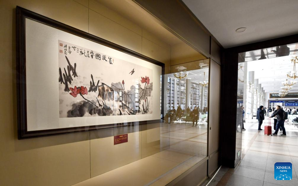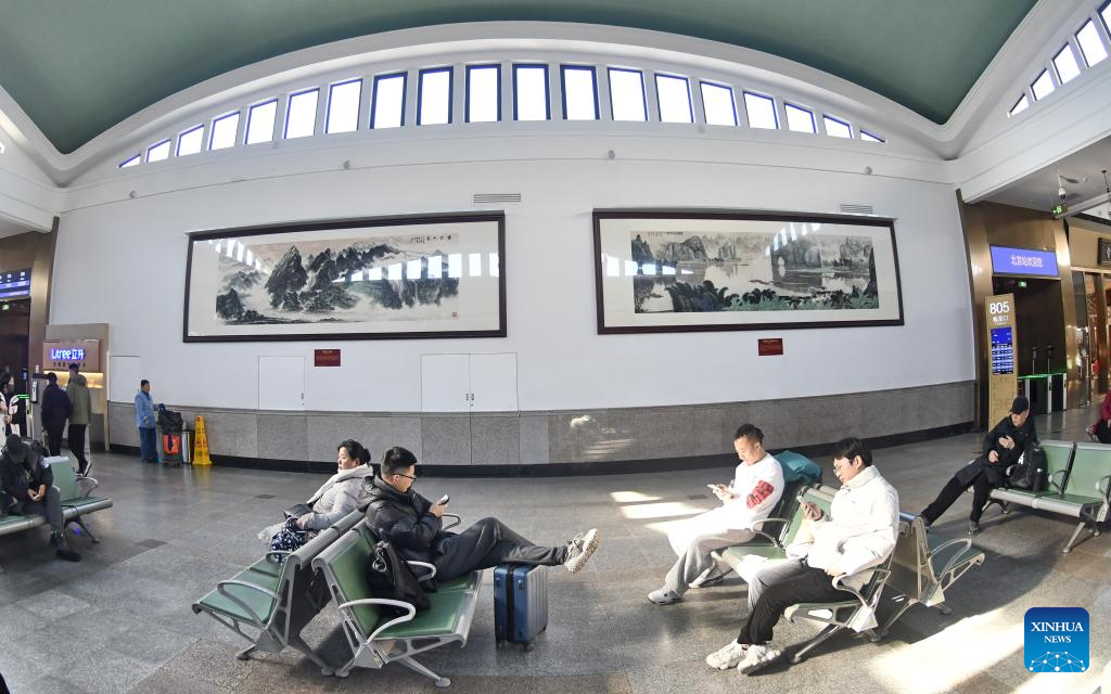 This photo taken on Dec. 18, 2024 shows paintings at Beijing Railway Station in Beijing, capital of China. (Xinhua/Li Xin)