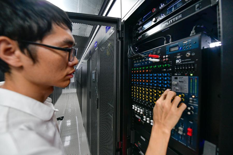 A staff member checks the operation of devices at the State Key Laboratory of Public Big Data at Guizhou University in Guiyang, southwest China's Guizhou Province, Aug. 29, 2024. (Xinhua/Yang Wenbin)