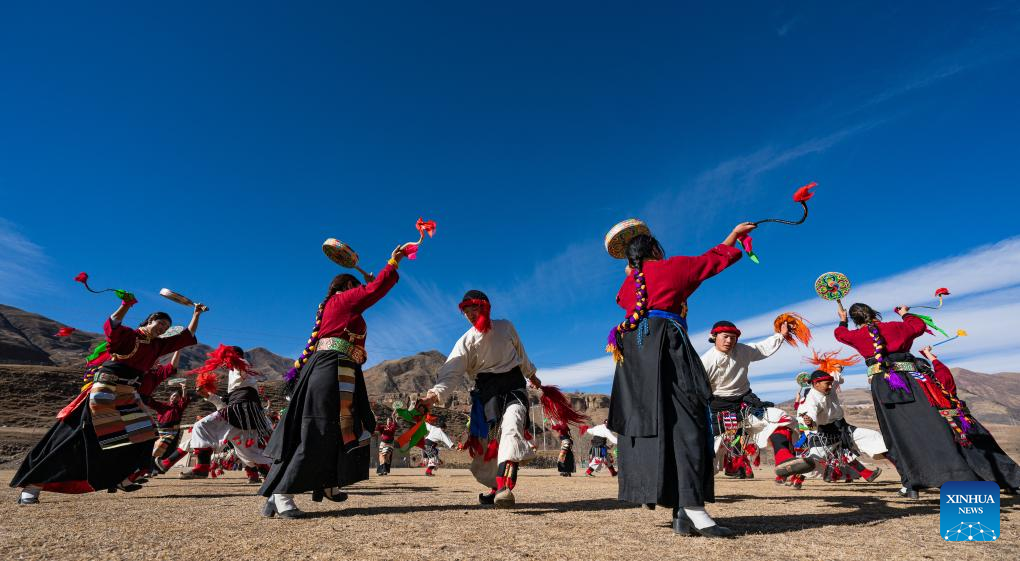 People perform Reba Dance in Chido Township, Dengqen County, Qamdo, southwest China's Xizang Autonomous Region, Jan. 5, 2025. (Xinhua/Tenzin Nyida)