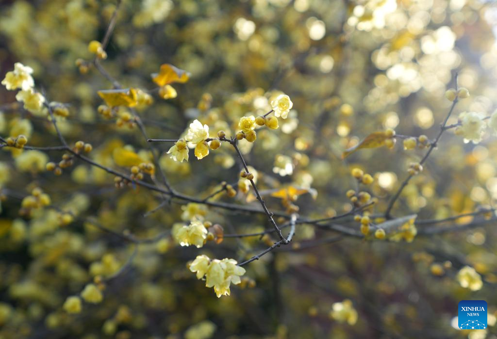 This photo taken on Jan. 6, 2025 shows wintersweet flowers at a temple in Hangzhou, east China's Zhejiang Province. (Xinhua/Han Chuanhao)