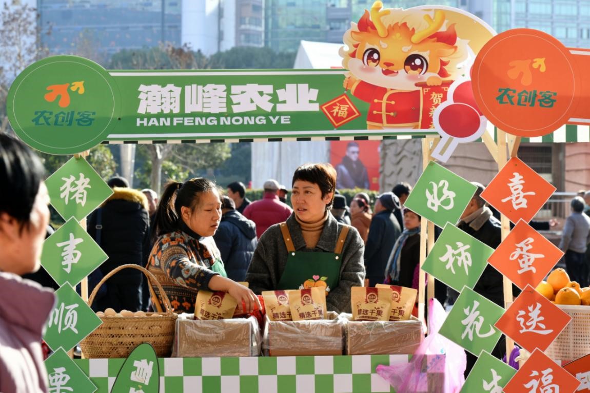 Agricultural innovators sell farm produce at a fair in Jinhua, east China's Zhejiang province, Dec. 24, 2023. (People's Daily Online/Shi Bufa)