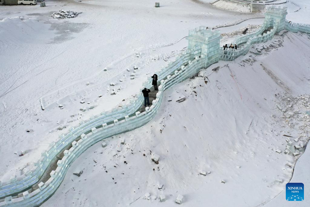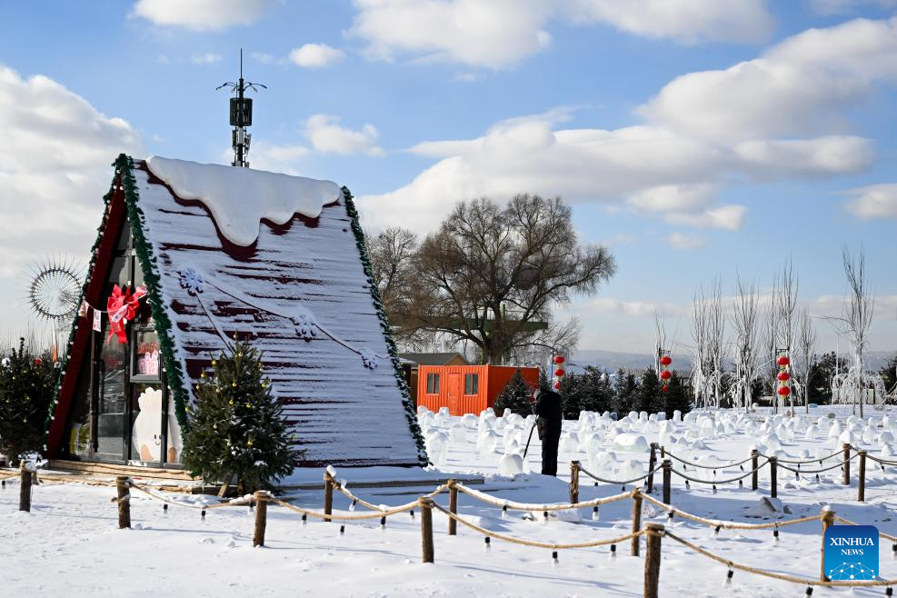 Tourists visit an ice and snow park by the Daheihe River in Hohhot, north China's Inner Mongolia Autonomous Region, Jan. 7, 2025. (Xinhua/Li Zhipeng)