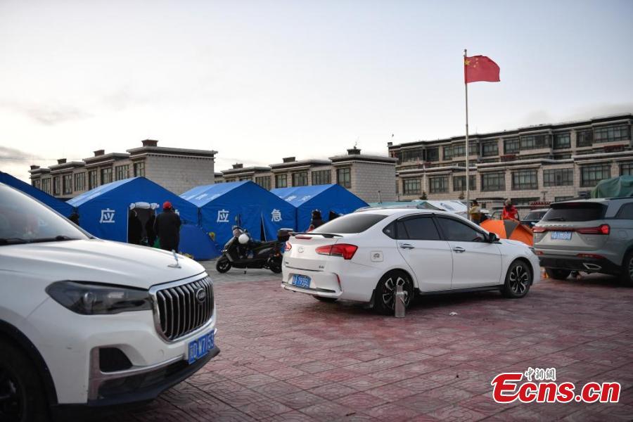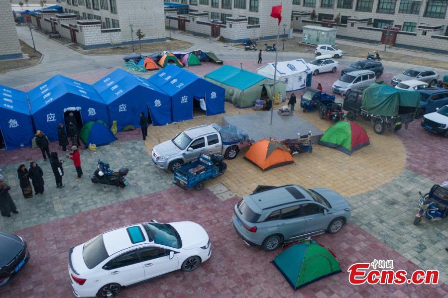 Tents for earthquake-affected residents are set up in Lhaze County of Xigaze, southwest China's Xizang Autonomous Region, Jan. 7, 2025. (Photo/China News Service)