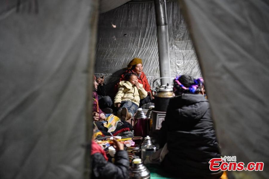 Earthquake-affected residents stay in a tent in Lhaze County in Xigaze, southwest China's Xizang Autonomous Region, Jan. 7, 2025. (Photo/China News Service)