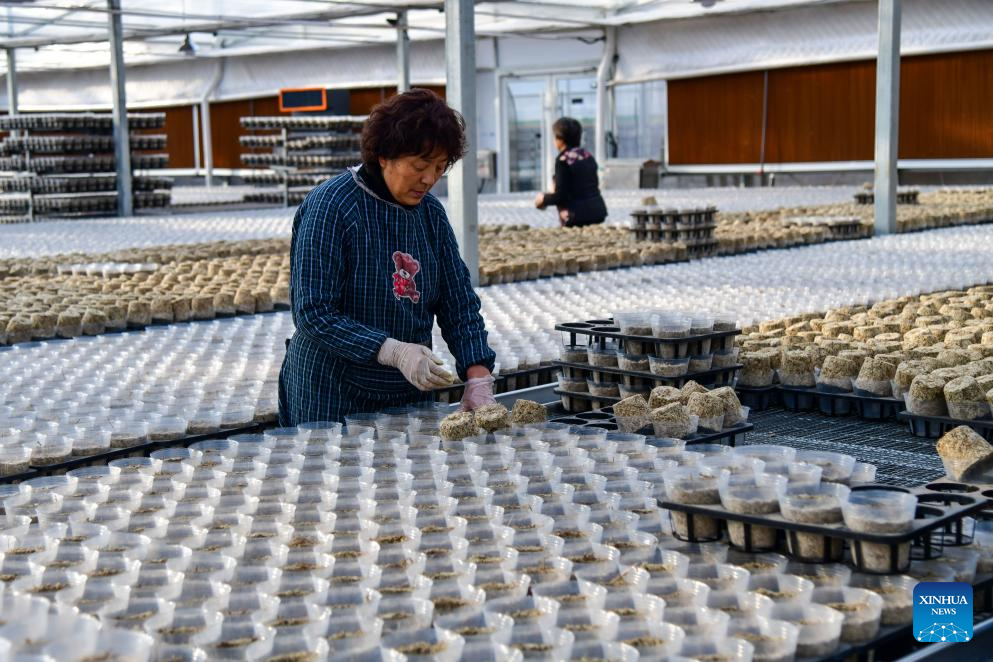 A worker makes water plant cups at a greenhouse in Boshan District, Zibo City of east China's Shandong Province, Jan. 8, 2025. Flower growers in Boshan District are preparing for the peak sales season during the holidays. In recent years, Boshan has introduced leading floral production enterprises to cultivate butterfly orchids and other flowers. (Xinhua/Zhu Zheng)