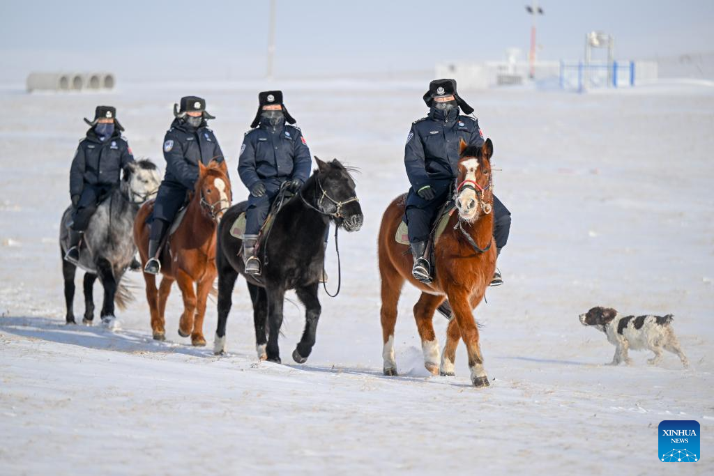 Mounted police patrol in Xilin Gol League, north China's Inner Mongolia Autonomous Region, Jan. 8, 2025. (Xinhua/Lian Zhen)