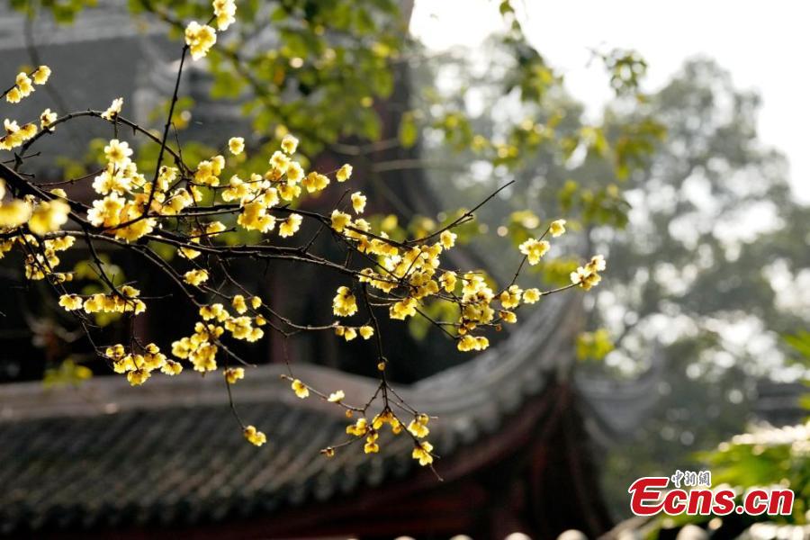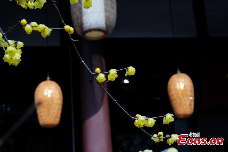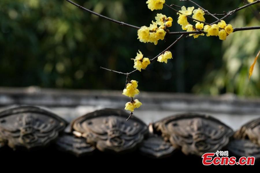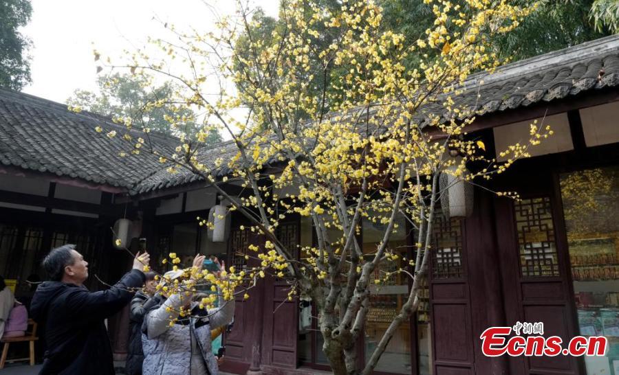 Wax flower is in full blossom at the Chengdu Du Fu Thatched Cottage Museum, drawing many visitors to southwest China's Sichuan Province, Jan. 9, 2025. (China News Service/An Yuan)