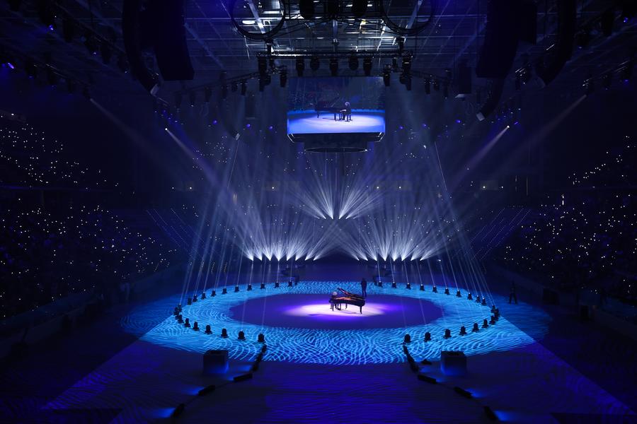 Italian musician Giovanni Allevi performs during the opening ceremony of the 2025 FISU World Winter University Games in Turin, Italy, Jan. 13, 2025. (Xinhua/Li Jing)