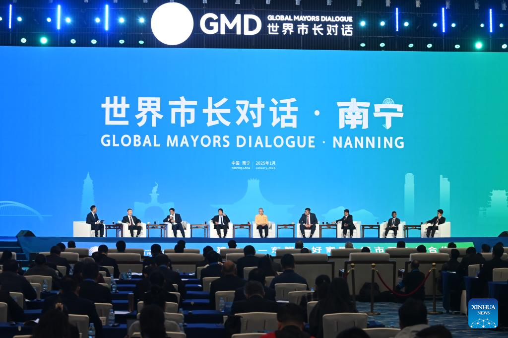 This photo taken on Jan. 16, 2025 shows the official release of the Nanning Initiative during the "Global Mayors Dialogue -- Nanning" event in Nanning, south China's Guangxi Zhuang Autonomous Region. (Xinhua/Lu Boan)