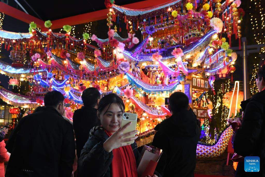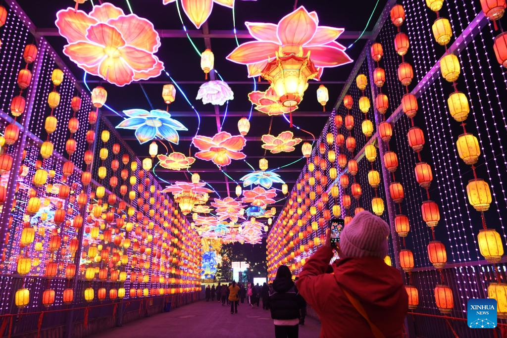 Lanterns are seen during the 31st Zigong International Dinosaur Lantern Show in Zigong, southwest China's Sichuan Province, Jan. 17, 2025. The 31st Zigong International Dinosaur Lantern Show kicked off here on Friday. This year's lantern show features 12 groups of super-large light sets, seven groups of large light sets and more than 200 groups of small and medium-sized light sets. The scale of the lantern displays has set a new record in the history of the Zigong International Dinosaur Lantern Show. (Xinhua/Xu Bingjie)
