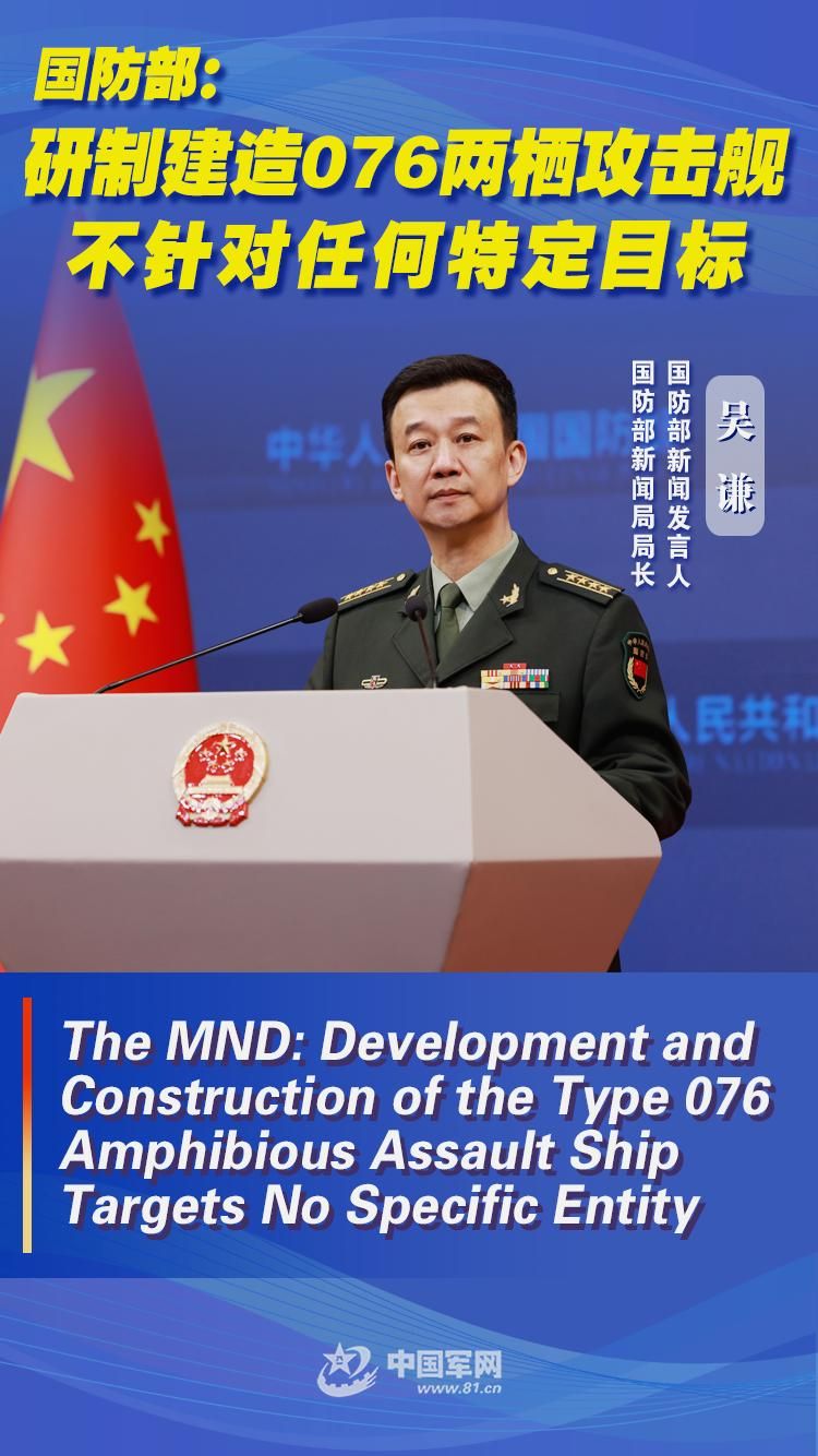 The MND: Development and construction of the Type 076 amphibious assault ship targets no specific entity