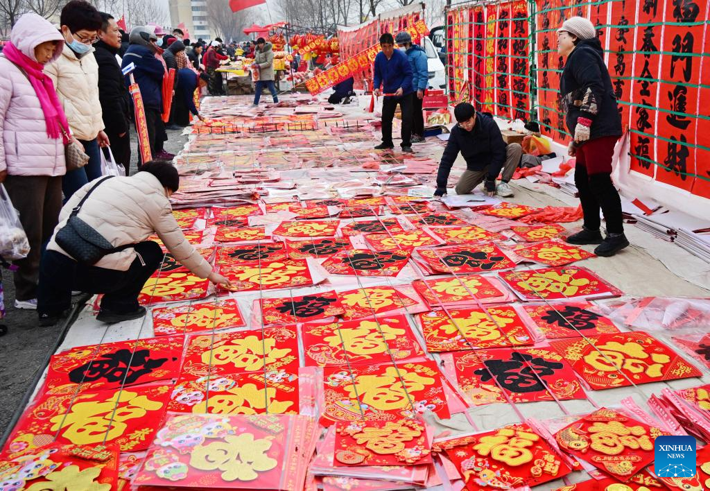 People select products at the Poli Market in Qingdao Xihai'an (West Coast) New Area in Qingdao, east China's Shandong Province, Jan. 18, 2025. With a history of more than 300 years, the Poli Market is a local intangible cultural heritage and one of the biggest traditional markets in eastern Shandong Province. As the Spring Festival approaches, many visitors flock to the market for abundant new year decorations, agricultural products, local delicacies and so on. (Xinhua/Li Ziheng)