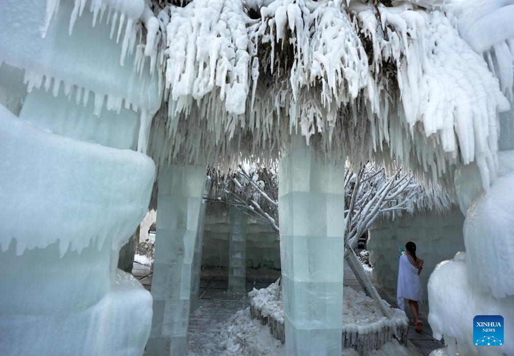 A visitor walks through an ice chamber at a hot spring resort in Shenyang, northeast China's Liaoning Province, Jan. 17, 2025. (Xinhua/Li Gang)