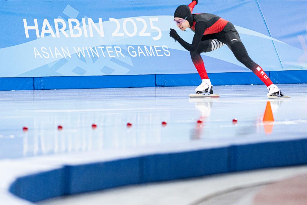 Gao Chenxi in action during the 2024-2025 China Cup Speed Skating Elite League women's 1500m in the Heilongjiang Ice Training Center, in Harbin, China, on Dec. 14, 2024.(Xinhua/Xie Jianfei)