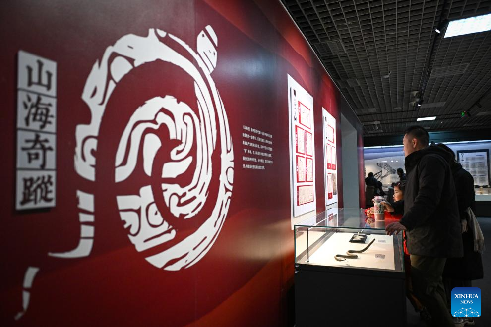 Visitors view exhibits at a Chinese zodiac cultural relics joint exhibition for the 2025 Year of the Snake held at the Natural History Museum of China in Beijing, China, Jan. 18, 2025. Some 50 snake specimens and a large number of snake-related cultural relics, handicrafts as well as exhibition panels were on display during the exhibition, showcasing the diverse images and meanings of snakes in the Chinese culture. (Xinhua/Chen Zhonghao)