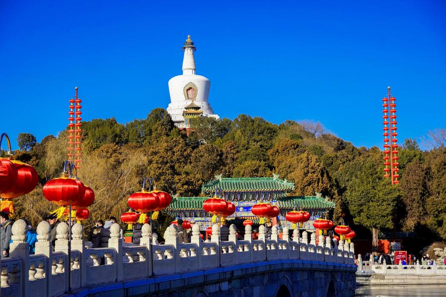Beihai Park is decorated with lanterns in Beijing, capital of China, Jan. 19, 2025. Lanterns and light installations have been arranged across China for the upcoming Spring Festival, or the Chinese Lunar New Year, which falls on Jan. 29 this year. (Photo by Li Menglan/Xinhua)
