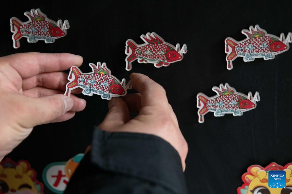 A craftsman displays products themed on fish-shaped lantern at Zhanqi Village in Shexian County of Huangshan City, east China's Anhui Province, Jan. 6, 2025. (Xinhua/Zhang Duan)